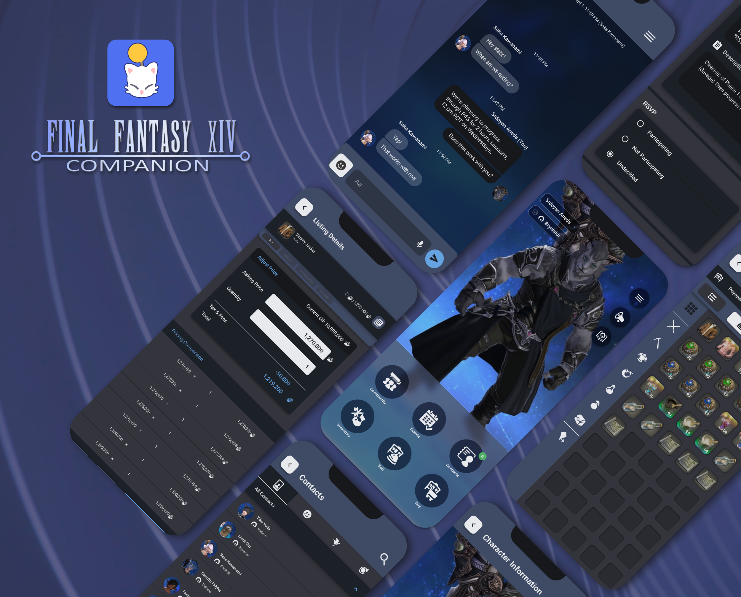 Mobile companion app to the MMORPG Final Fantasy XIV Online that allows user to view in-game information and other functions